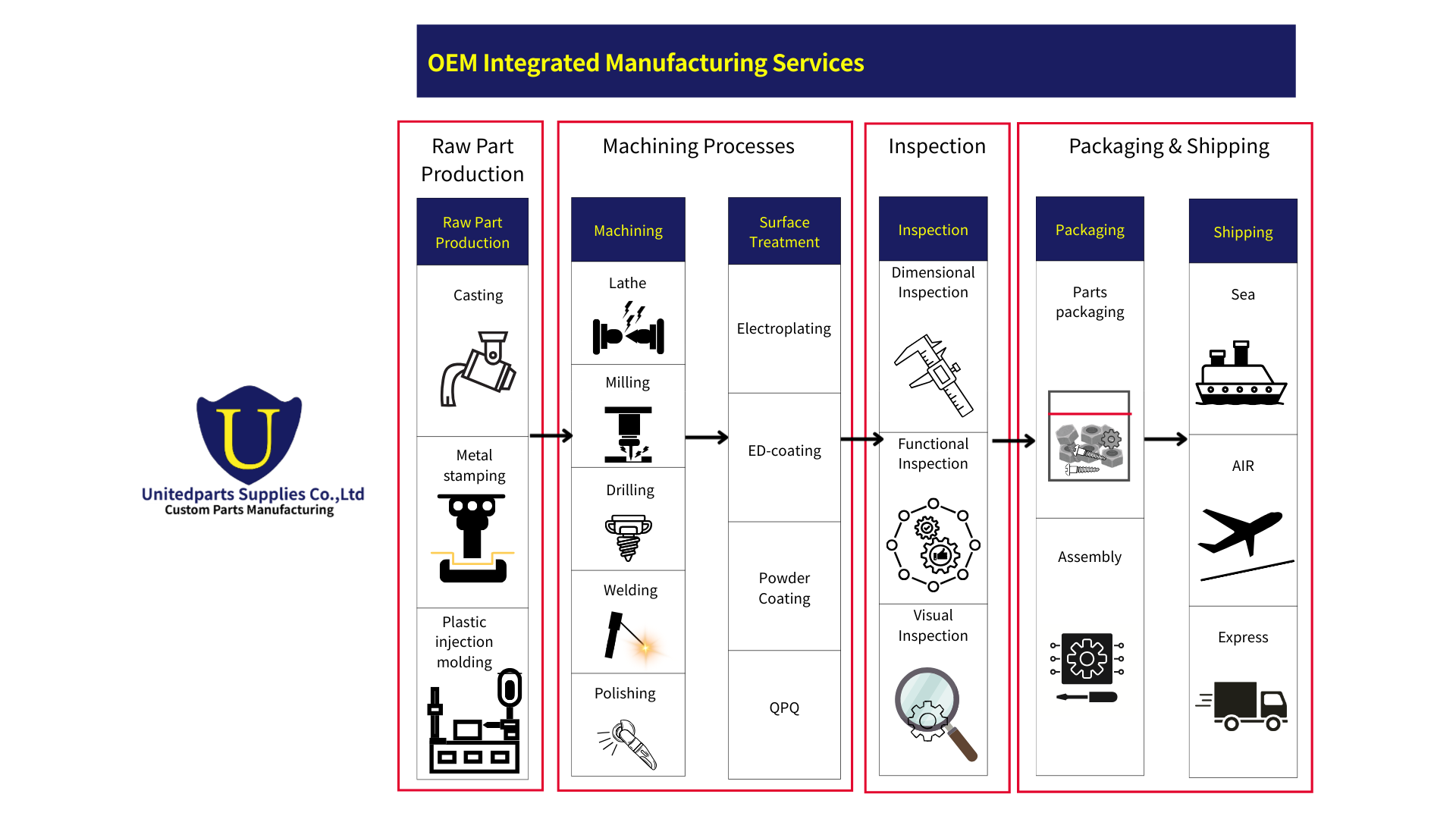 Unitedparts is not a single-process manufacturer, but the coordinator and supervisor of the overall manufacturing flow.