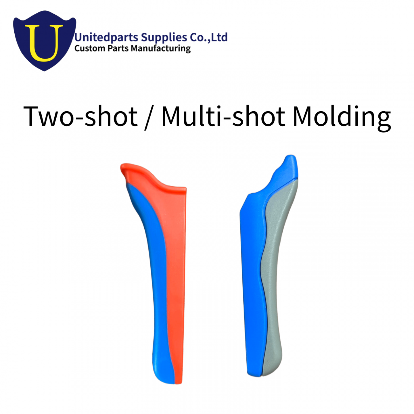 Two different materials or colors are injected sequentially in the same mold to form a single, integrated part. Commonly used for appearance parts or products combining soft and hard materials, such as handles and buttons.