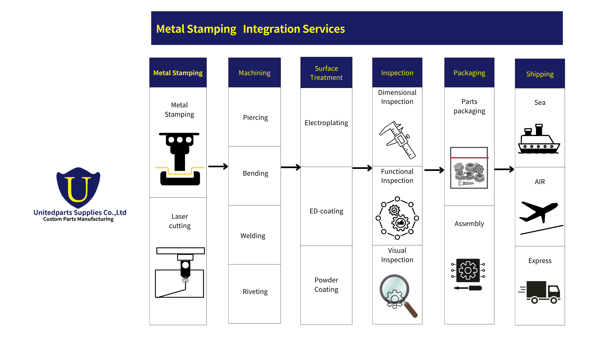 From raw material preparation and secondary processing to surface treatment, inspection, packaging, and shipment, Unitedparts actively oversees and controls each stage of the sheet metal production process.